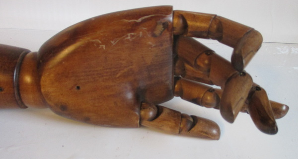 antique wooden articulated hand and arm