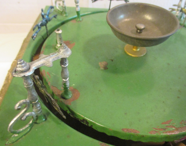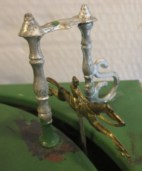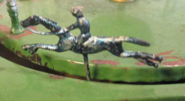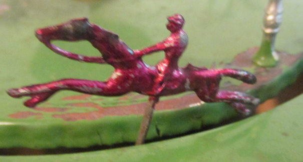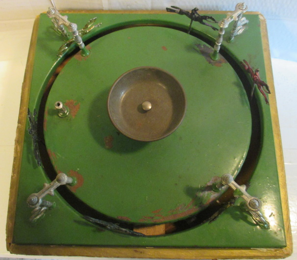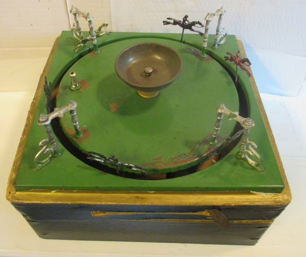 gorgeous antique French jeu de comptoir bistro gambling game/ horse racing game : " jeu de course " small one ! only 24 cm x 24cm horse 4 cm ca 1940 ! extremely good working condition no French flag, no BUT some paint loss