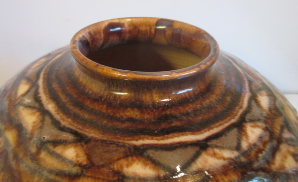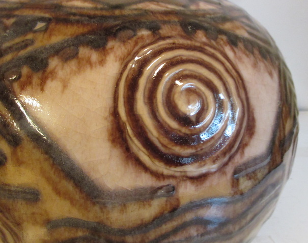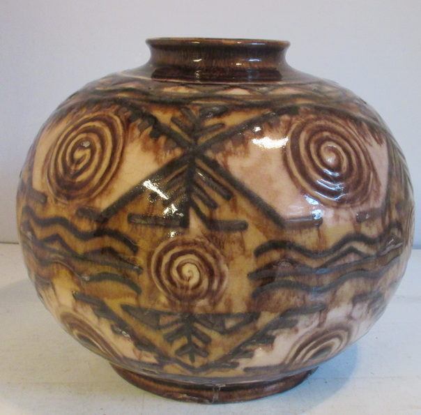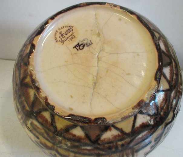 Big size art deco vase with spectular geometric design influenced by Cubism & Japanese aestetic Sevres France design of Maurice Gensoli marked & signed 1927 very good condition some small production defaults big size : 25 cm high/ diameter 26 cm !