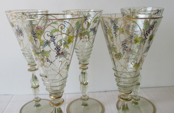gorgeous set of 5 crystal wine glasses